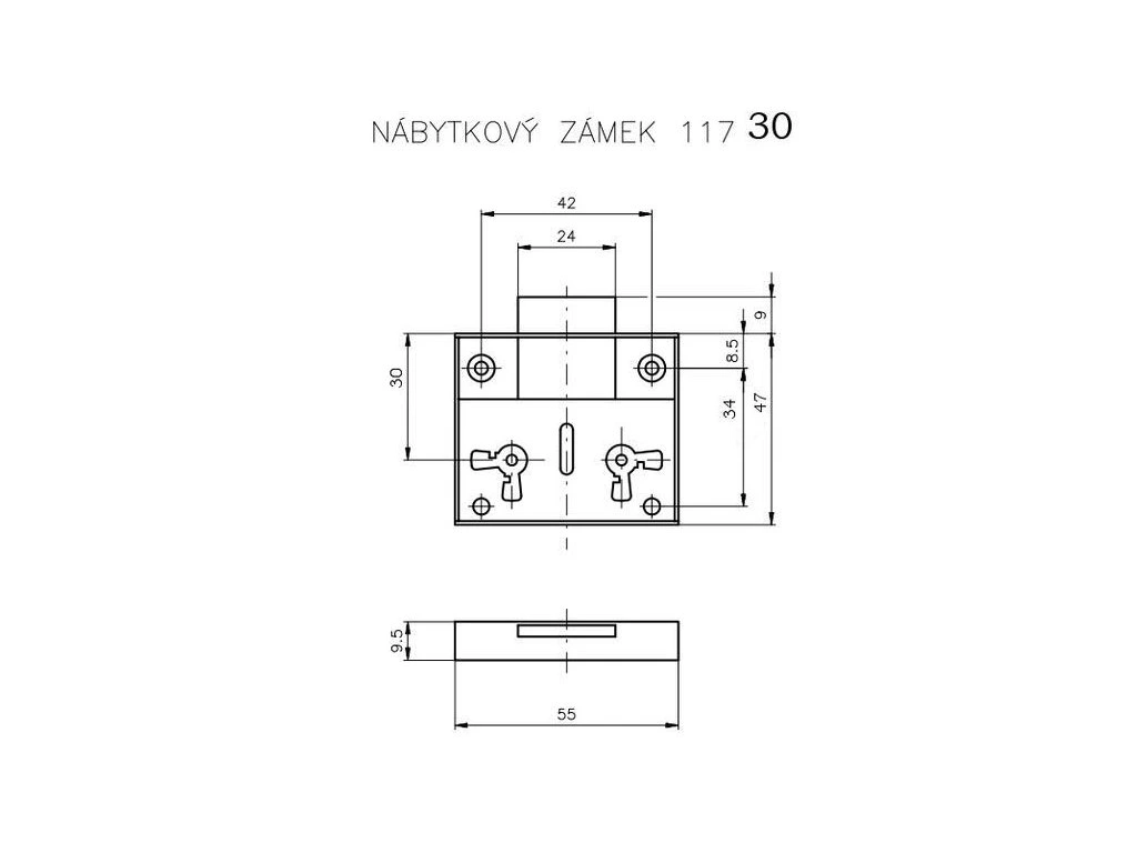 Zámky Lištové - vícebodové zámky Cylindrické nábytkové zámky, schránkové zámky » Nábytkový zámek 117/30 a 117/40